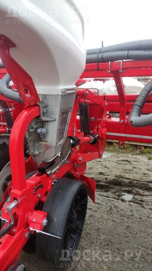 Высокая точность высева благодаря пневматической вакуумной системе дозирования. Равномерное распределение семян по глубине заделки (1–10 см) за счёт копирующих колёс.