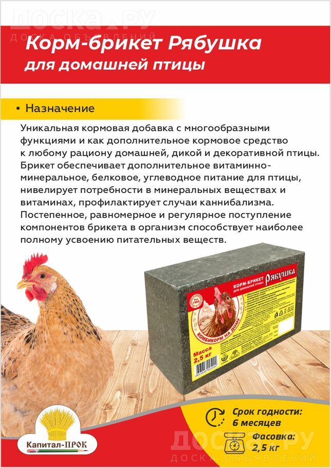 Не упустите возможность обеспечить свою птицу всем необходимым для здоровья и продуктивности. Закажите Корм-брикет Рябушка уже сегодня.