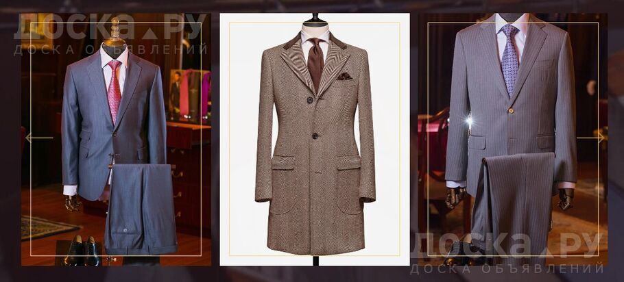 Мы шьем на заказ деловые костюмы, свадебные костюмы, костюмы тройки, брюки, буки, пиджаки, рубашки пальто, водолазки, плащи и многое другое.