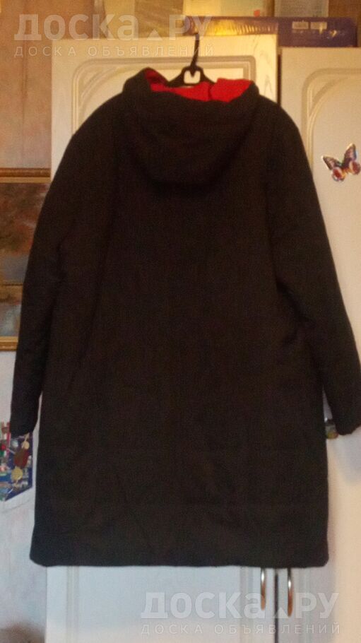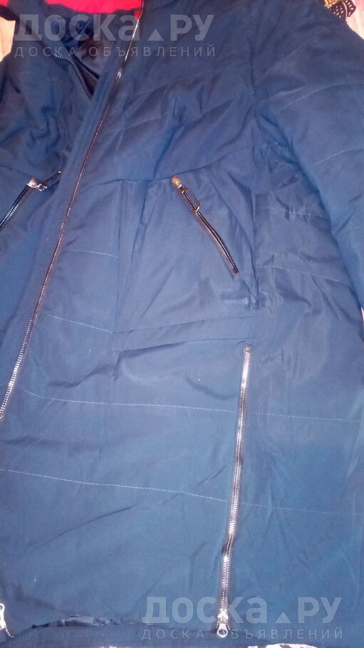 Зимний пуховик женский темно-синего цвета с красным внутри капюшоном. Размер 60-62. Цена 3000р. Очень теплый (на морозы идеально т. к. не промерзает). Полу обхват по груди 67см длина 98. Могу отправить любым удобным способом.