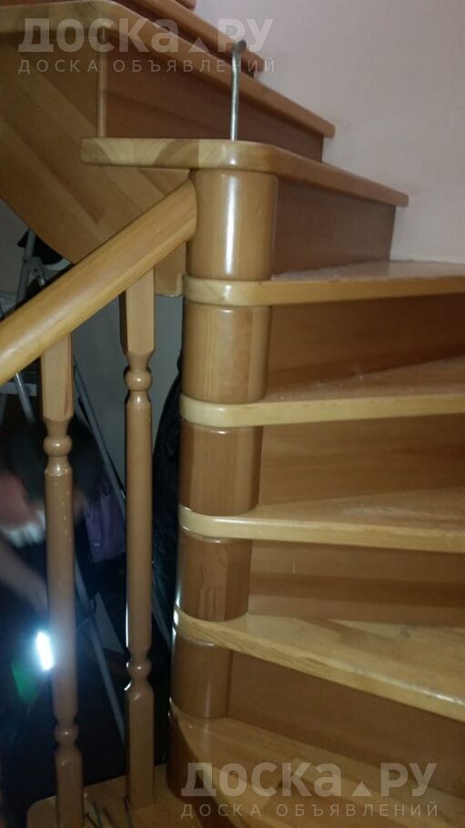 Деревянная межэтажная поворотная (левая)лестница на 14 ступеней