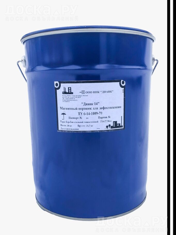 Магнитный порошок Дианк 14 по ТУ 6-14-1009-79 и Дианк 36 по ТУ 6-36-05800165-1009-93 создан из магнитных частиц на основе Fe3O4. Магнитный порошок производства ООО НПК ДИАНК отличается определенным распределением размеров магнитных частиц до 30 мкм, чистотой, и обеспечивает индикацию мельчайших дефектов, идеально подходит для получения четкого индикаторного рисунка и позволяет добиться высокой чувствительности и контраста.