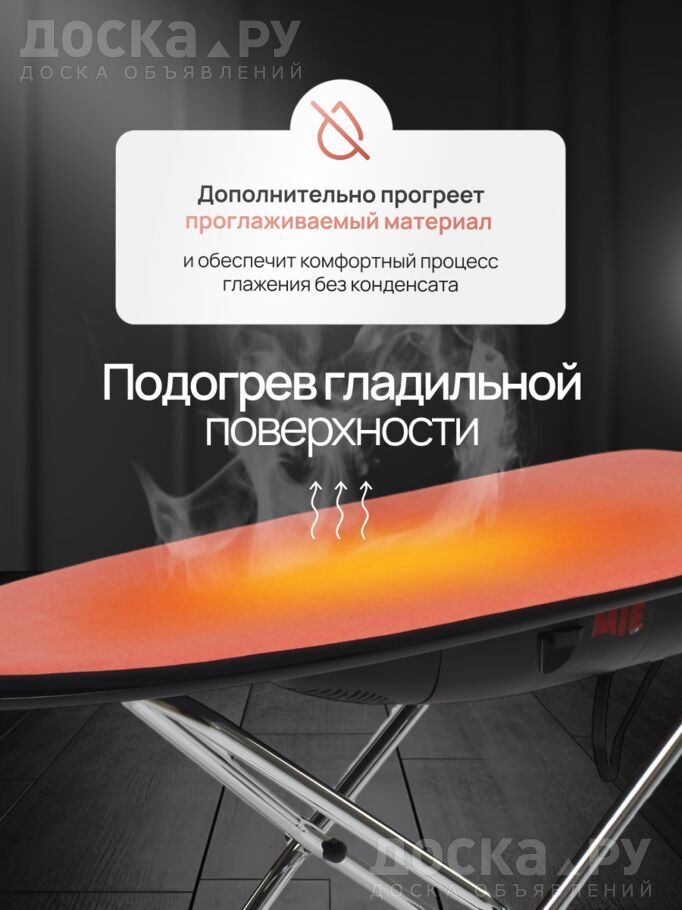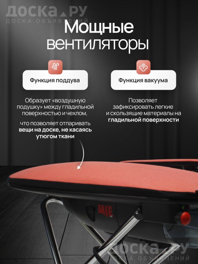 Являясь уникальной функцией, подогрев гладильной поверхности увеличивает скорость и качество глажения, а вам увеличивает время на личные занятия. Также подогрев позволит быстро просушить влажную одежду. Сетчатая металлическая поверхность отлично пропускает пар, а благодаря функции отвода пара предотвращает образование капель, которые могут увлажнить чехол и оставить пятна на одежде. Отвод пара (он же вакуум) прижимает изделие к гладильной поверхности и не даёт ей соскальзывать, что особенно актуально для одежды из шёлка, атласа, шифона, сатина. Функция поддува, создавая под чехлом воздушную подушку, обеспечивает деликатное глажение вещей, на которой может остаться лоск. С её помощью вес утюга не будет оказывать никакого давления на ткань.