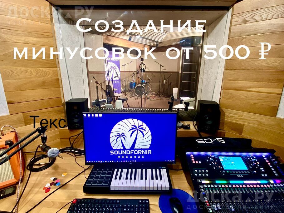 Полноценная студия звукозаписи 100 кв. м. , состоящая из 4 помещений: тон зал, контрольный зал, лаундж зона, санузел. Тон зал спроектирован по специальной технологии комната в комнате. Контрольная комната оборудована двумя типами мониторов ближнего и среднего поля: Adam Audio, Eve Audio. Лучшее оборудование и инструменты мирового уровня. Микрофоны: Soyuz, Telefunken, Neumann.