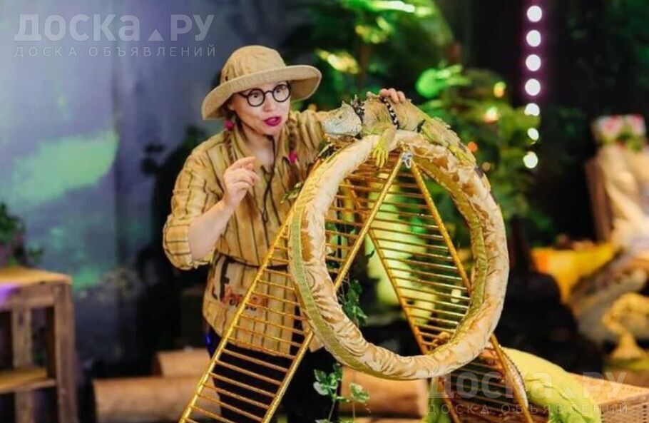 Дрессированные животные обезьянка, попугайчики и рептилии на праздник