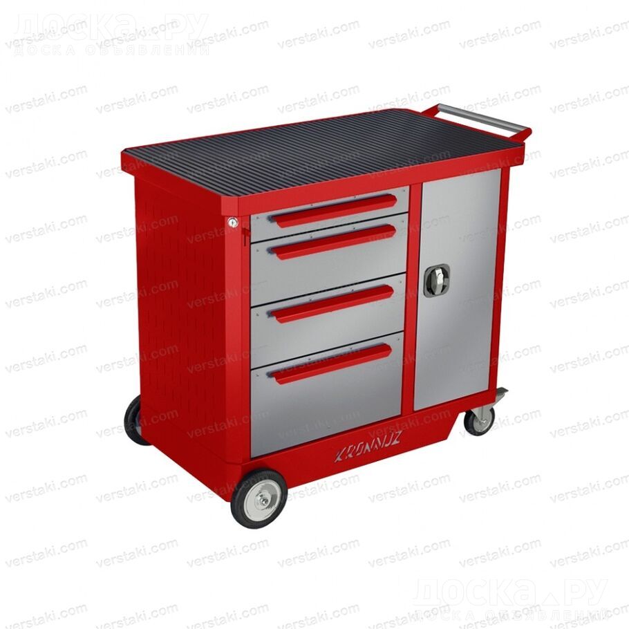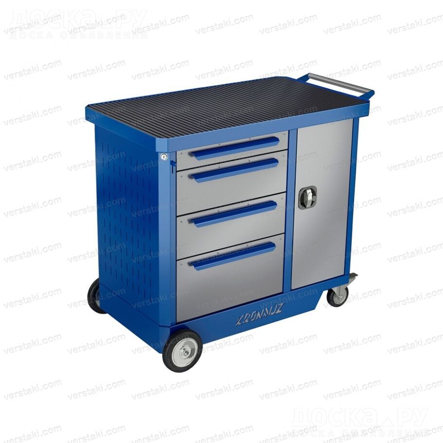 Передвижная инструментальная тележка для автосервиса Kronvuz Tbv 411 используется для хранения и перемещения ручных или механизированных рабочих приспособлений внутри производственных помещений, в автосервисах, ремонтных мастерских. Габаритные размеры изделия (ДхШхВ) составляют 950x550x870 мм, при этом тележка может выдерживать общую нагрузку до 1000 кг, а максимальная нагрузка на выдвижные ящики и полки составляет 50 кг/шт.