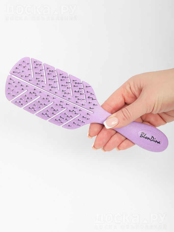 Массажная щетка для волос. Опт. Сочетает в себе прорези и подвижные части, что позволяет расчесать даже самые спутанные и густые волосы. Нейлоновая щетина. Дизайн расчески выполнен в форме листа дерева. Удобная ручка. Длина 22, 5 см, ширина 6, 5 см, высота щетины 2 см, вес 70 гр. Каждая упакована в белую картонную коробку.