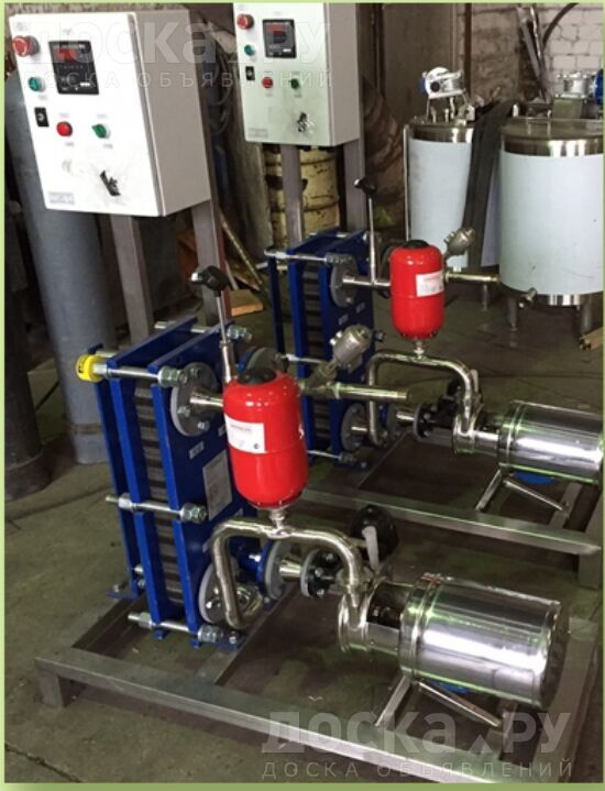 Установка нагрева воды паром Унв-73-110.Установка нагрева воды предназначена для производства перегретой воды с температурой до Т=110 ͦC (избыточное давление в контуре 1, 5 кг/см2) с помощью пара с Т=+125 - 135 ͦС, поступающего с парового котла. Подача пара осуществляется через регулируемый пневмо-клапан Burkert в разборный пластинчатый теплообменник, где пар отдает тепло теплоносителю и конденсируясь, поступает в конденсатоотводчик. Установка оснащена циркуляционным насосом Lawara СЕА 70/3-V (нерж. Италия, торцевое уплотнение - витон, температура среды до Т=+115 ͦC), который подает горячую воду на потребителя. Установка рассчитана для работы в закрытых системах нагрева, оборудована редукционным клапаном для поддержания избыточного давления в греющем контуре, аварийным сбросным клапаном и расширительным баком с мембраной. Рама изготовлена из нержавеющей стали AISI 304. Теплообменник FP-10-9-1-EH изготовлен из пластин Funke (Germany).
