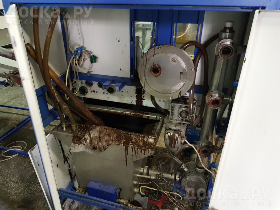 В наличии шоколадно-глазировочн ая линия с 2 мощными итальянскими моноблоками, ширина конвейера 600 мм.