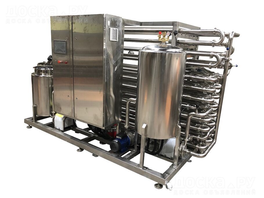 предназначен для ультрапастеризации молока и сливок. Предварительно подогретый продукт из секции рекуперации поступает в секцию пастеризации, после чего подается в 30-секундный выдерживатель. После выдержки продукт поступает во вторую секцию рекуперации, введённую в установку с целью снижения расходов на тепловую энергию, затем поступает в секцию ультрапастеризации, в которой он нагревается до температуры 137ºС c выдержкой 5 секунды, после чего следует через предварительное охлаждение в секциях рекуперации на охлаждение до 20ºС. Теплоноситель циркулирует в замкнутом контуре через специальную систему его подготовки с использованием технологического пара. Контроль температуры охлаждения, ультрапастеризации, мойки осуществляется в автоматическом режиме. Особенности и преимущества: Процессы обработки, охлаждения, мойки полностью автоматизированы. Короткое время температурного воздействия позволяет уничтожить болезнетворные бактерии, не ухудшая при этом качества продукта. Конструкции элементов установки исключают возможность попадания в продукт во время работы нестерильных технологических сред. Автономная система СИП с однократным применением растворов. Технические характеристики: Производительность-50 0л/ч, Расход воды-1500л/ч, Расход пара-72 кг/ч, Температура стерилизации -137 Со, Температура перегретой воды - 169 Со, время выдерживания -5с. , габариты - 3х2Х2х5м. Стоимость- 10 069 204 рублей. Изготовим стерилизаторы от 500л/ч до 5000л/ч