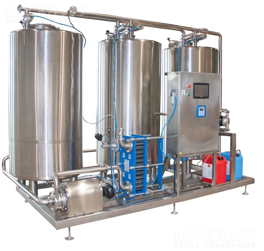 концентрированную кислоту и щелочь; - емкости изготовлены из нержавеющей стали AISI 316, могут быть изготовлены в изотермическом исполнении; - для регулирования уровня кислотности при сливе после промывки, установлены кондуктометрические датчики; - рама изготовлена из квадратного профиля 60х60х4 (AISI 304) ; - нагрев в противоточном пластинчатом теплообменнике производится с помощью пара, перегретой водой, горячей водой, локальный бойлер с насосом. Стоимость - 3 181 420 рублей. Изготовим CIP-модули необходимого Вам объема и комплектации емкостей от 500л до 3000л