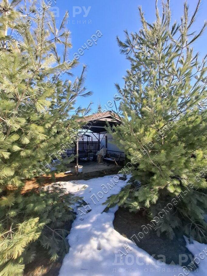 На участке лесные и садовые деревья, кустарники, газон, дорожки, стоянка, во дворе стоянка на две машины, участок огорожен (со стороны улицы метеллопрофиль, с внутренней стороны поселка металический штакетник, откатные электрические ворота для вьезда на участок и калитка для входа).