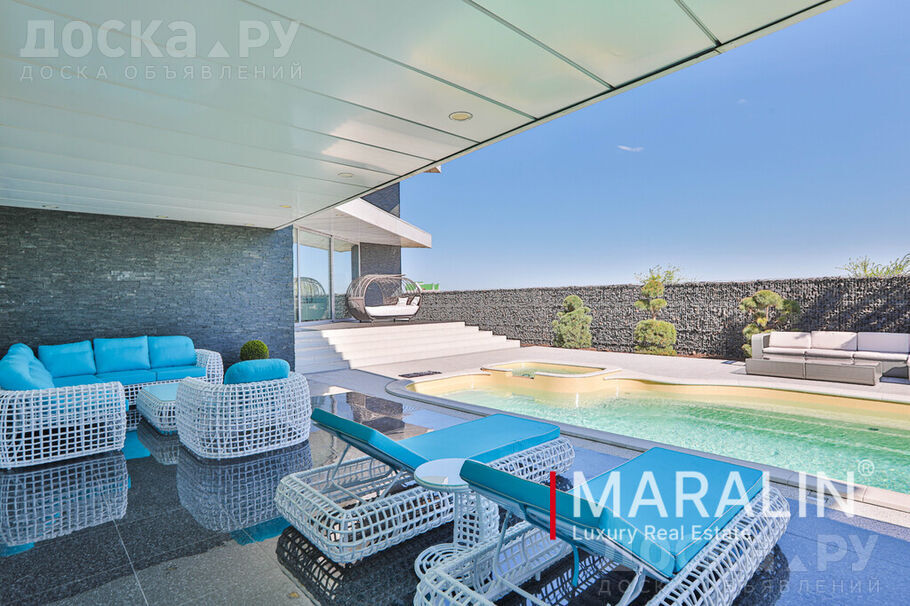 Продажа от собственника. Без комиссии. По этому объекту вам ответит Маралин Алексей. Продаю элитный дом, выдержанный в едином стиле минимализм, решен с большими витражами и открытыми террасами. Общая площадь дома 460 м2. Жилое пространство занимает два этажа. Все спальни решены с террасой, санузлом и гардеробной. В дом инсталлирован гараж на три автомобиля. Отличное состояние, дорогостоящая отделка, высокое техническое состояние. Размер земельного участка 1200 м2. Двор благоустроен: взрослый декоративный ландшафт, уютная зона патио, уличный бассейн. Все фото реальные. Подробно об объекте на сайте компании на Маралин Ру. Узнайте сколько стоит Ваша недвижимость. Бесплатная консультация и выезд специалиста.