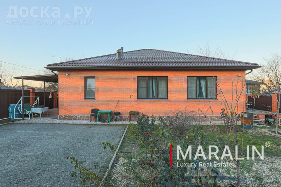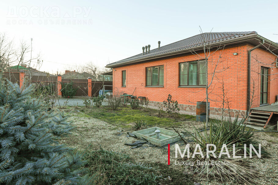 Продажа от собственника. Без комиссии. По этому объекту вам ответит Панина Анастасия. Г. Ростов-На-Дону, Александровка. Продаю одноэтажный кирпичный дом, расположенный на земельном участке 650 м2 . Общая площадь домовладения составляет 162 м2. Дом построен на монолитном железобетонном фундаменте, с наружными стенами из газобетонных блоков, облицованных декоративным кирпичом, и внутренними стенами из полнотелого керамического кирпича. Скатная кровля покрыта мягкой черепицей Shinglas и имеет холодный чердак. Удобная планировка: прихожая, холл, бойлерная, гостевой санузел, большая совмещенная кухня-гостиная с выходом на террасу, мастер-спальня с гардеробной, ванная комната, а также две спальни. В доме выполнен актуальный ремонт, установлена вся необходимая техника и мебель. На участке организован въезд на два автомобиля с автоматическими воротами, есть место для отдыха и сада. Коммуникации: холодное водоснабжение и электроснабжение- центральные, отопление и ГВС обеспечиваются газовым котлом, канализация - локальная (септик). Дом свободен и готов к быстрой продаже. Инфраструктура района развита: в шаговой доступности находятся супермаркеты "Магнит" и "Пятерочка", школа 22, поликлиника 2, детские сады, Александровский лесопитомник, пункты выдачи заказов, аптеки, остановки общественного транспорта. Все фото реальные. Подробно об объекте на сайте компании на Маралин Ру. Узнайте сколько стоит Ваша недвижимость. Бесплатная консультация и выезд специалиста.