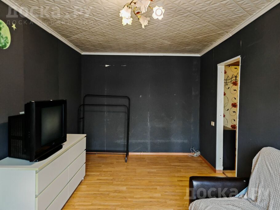 Комната просторная, площадью 18 м², оборудована спальными местами. Из бытовой техники имеется телевизор, холодильник, стиральная машина.