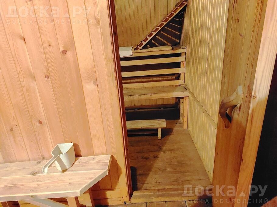 Классная баня, настоящая, с парилкой. Также из натурального бревна. Есть надувной бассейн специально для дачи, который можно разместить на участке в сезон.