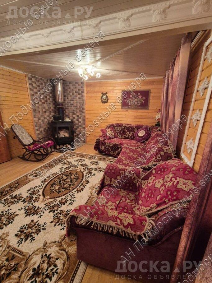 Дом 76.4 кв. м, 2 этажа, материал брус, утепленный, перекрытия деревянные, окна деревянный стеклопакет, кровля профнастил; наружная отделка - доска; внутренняя отделка - вагонка, внутри под чистовую отделку, электропроводка разведена по дому; полы - ламинат; отопление - камин, дом стоит на фундаменте из блоков, на окнах имеются ставни; построен в 2014 году.