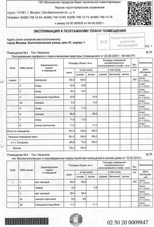 Сдаётся встроенно-пристроенно е помещение по адресу: г. Москва, ул. Болотниковская, д. 47, корп. 1.
