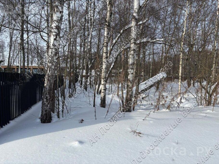 На участке лесные деревья, участок огорожен (профлист с одной стороны)