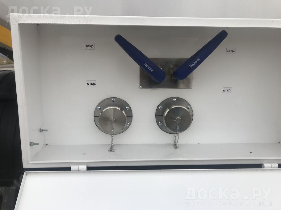 Материал внешней обшивки цистерны Нержавеющая сталь 1, 5 мм, донышки изготовлены из высокопрочного композитного материала 5 мм (цвет возможен любой по выбору клиента или под цвет кабины шасси)