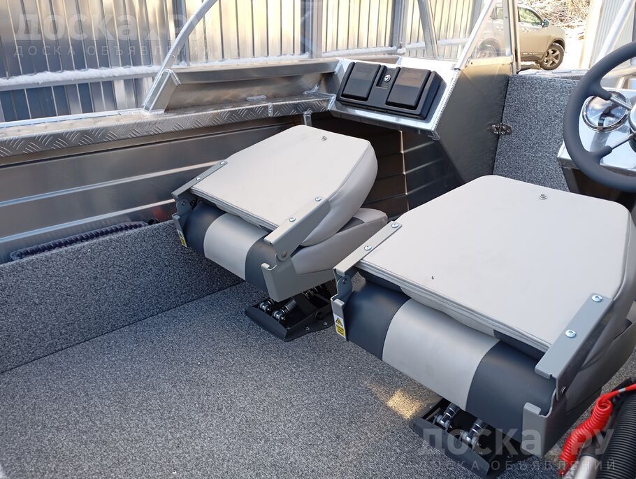 Бокс аккумуляторный, чехол транспортировочный Оксфорд, установочный комплект, троса газ/реверс, рулевую тягу, контроллер (машинка газ/реверс), кожух тросов, горн электрический, палубное покрытие Wоrkdесk (Itаly), перчаточный ящик, амортизационные стойки, продольно скользящий механизм, раскладные поворотные кресла, трап складной, комплект помывочный SеаFlо, шланг с грушей, лебедку якорную с якорем и кнопкой сброса, спиционный штурвал, тахометр и панель переключения с прикуривателем и USВ.